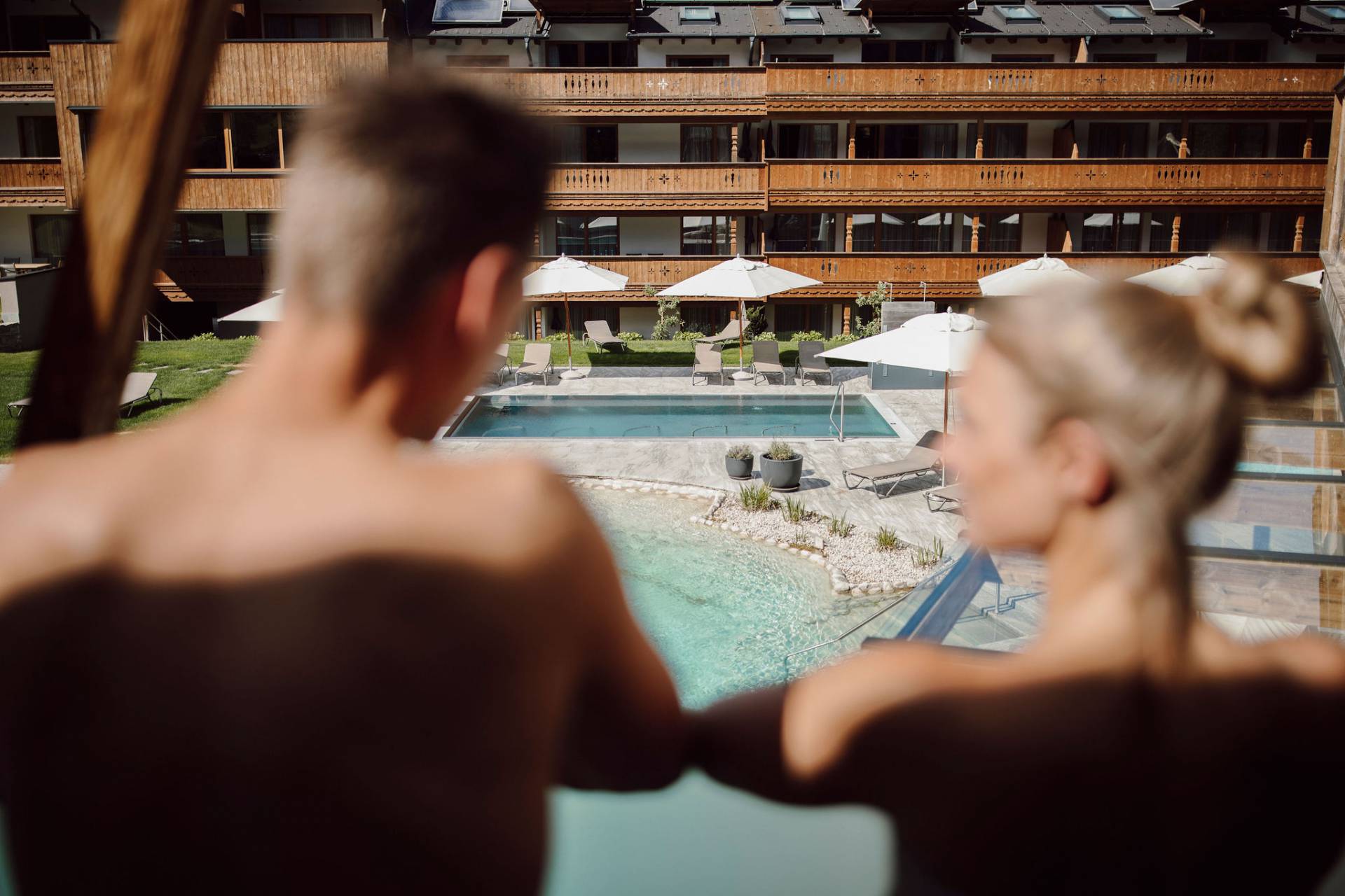 In the panoramic relaxation room you can enjoy the stunning view of the Griessenkar after a sauna or a swim and lose yourself in deep tranquillity. Or you can make yourself comfortable with a book or your favourite tunes on our sunbathing lawn, measuring some 5,000 m², with free sunbeds and parasols.